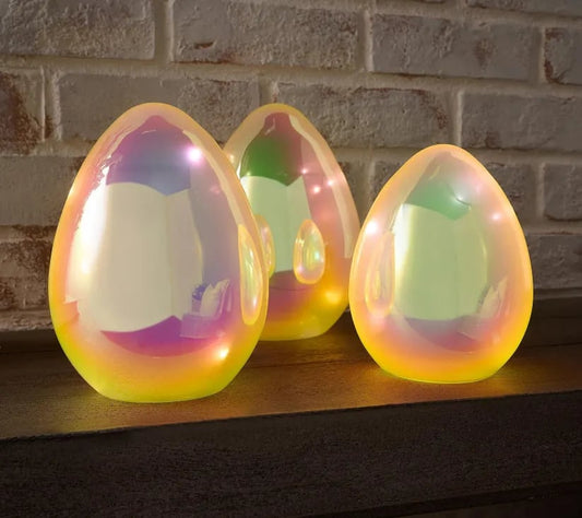 🌌🌟Easter Decor - Glowing Pearlescent Glass Egg Trio