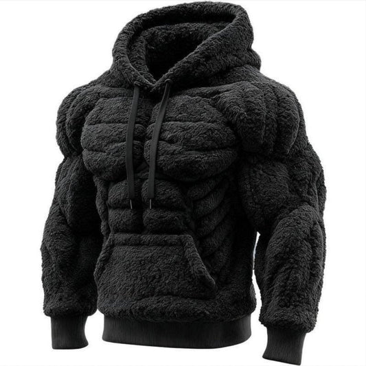 Line Art Flannel Warm Men's Hooded Sweatshirt