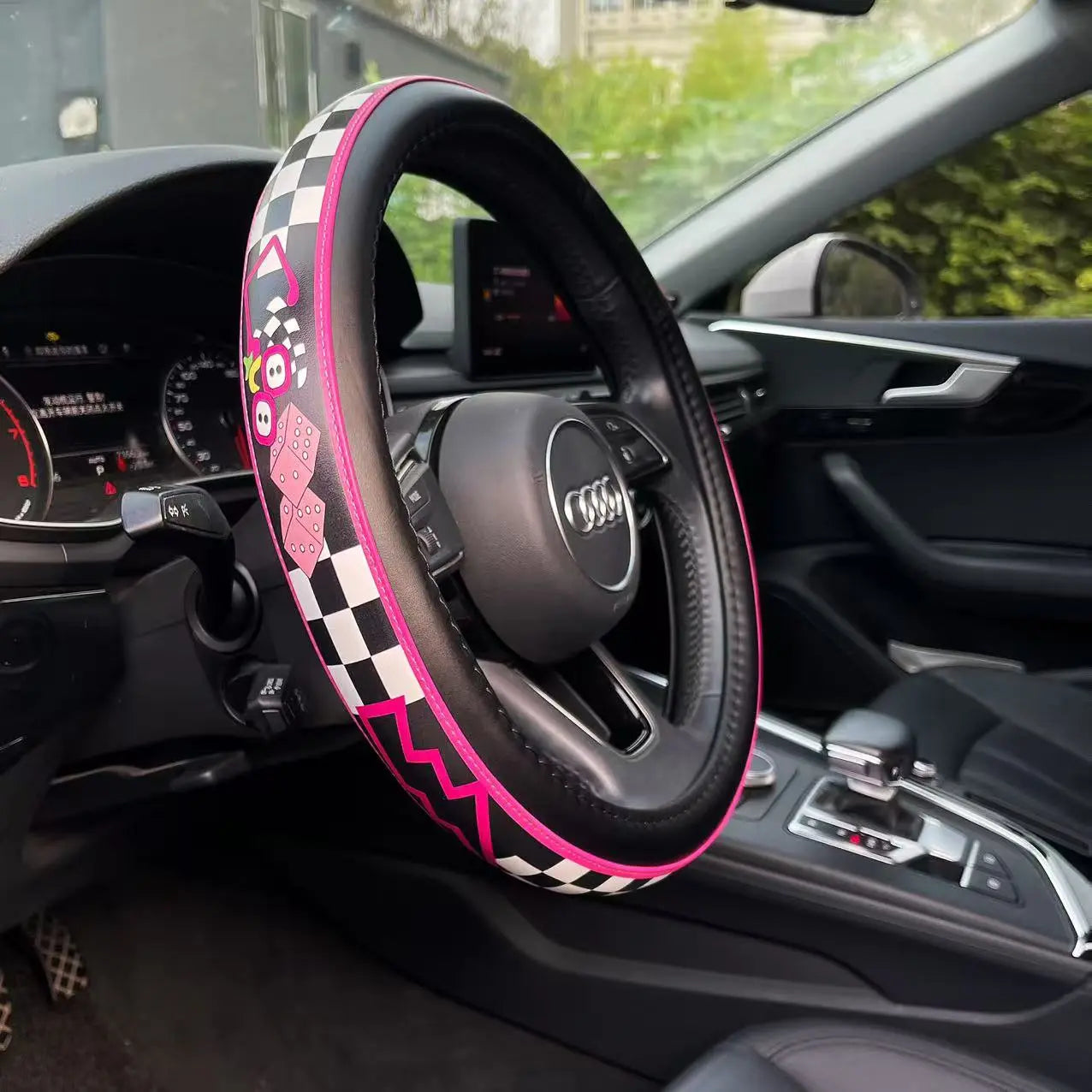 - This steering wheel cover features vibrant printed patterns with intricate designs. 🌸