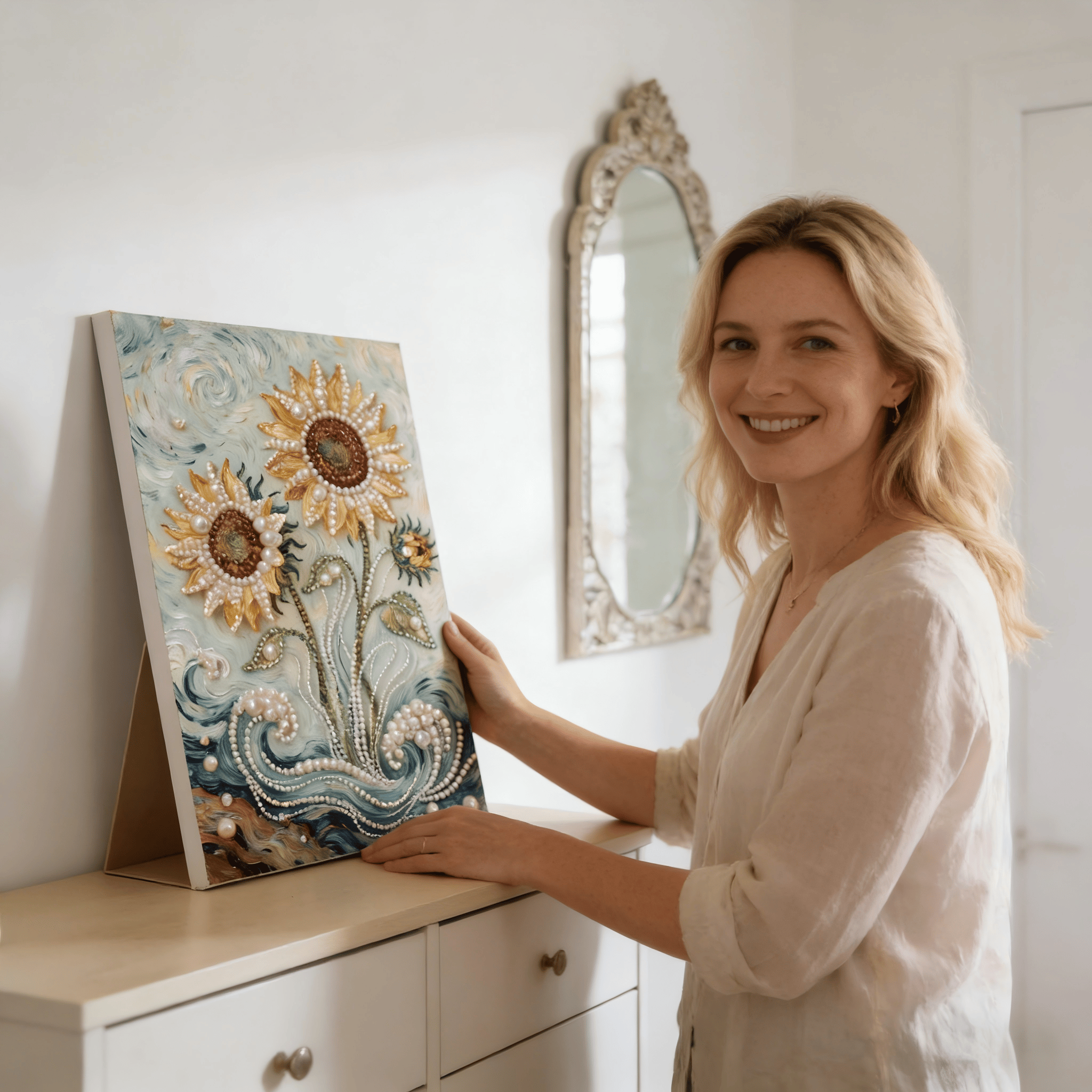 ✨ Sparkling, Textural Art: Go beyond flat paint! Adhesive canvas & vibrant pearl beads create dazzling, dimensional artwork that catches the light.