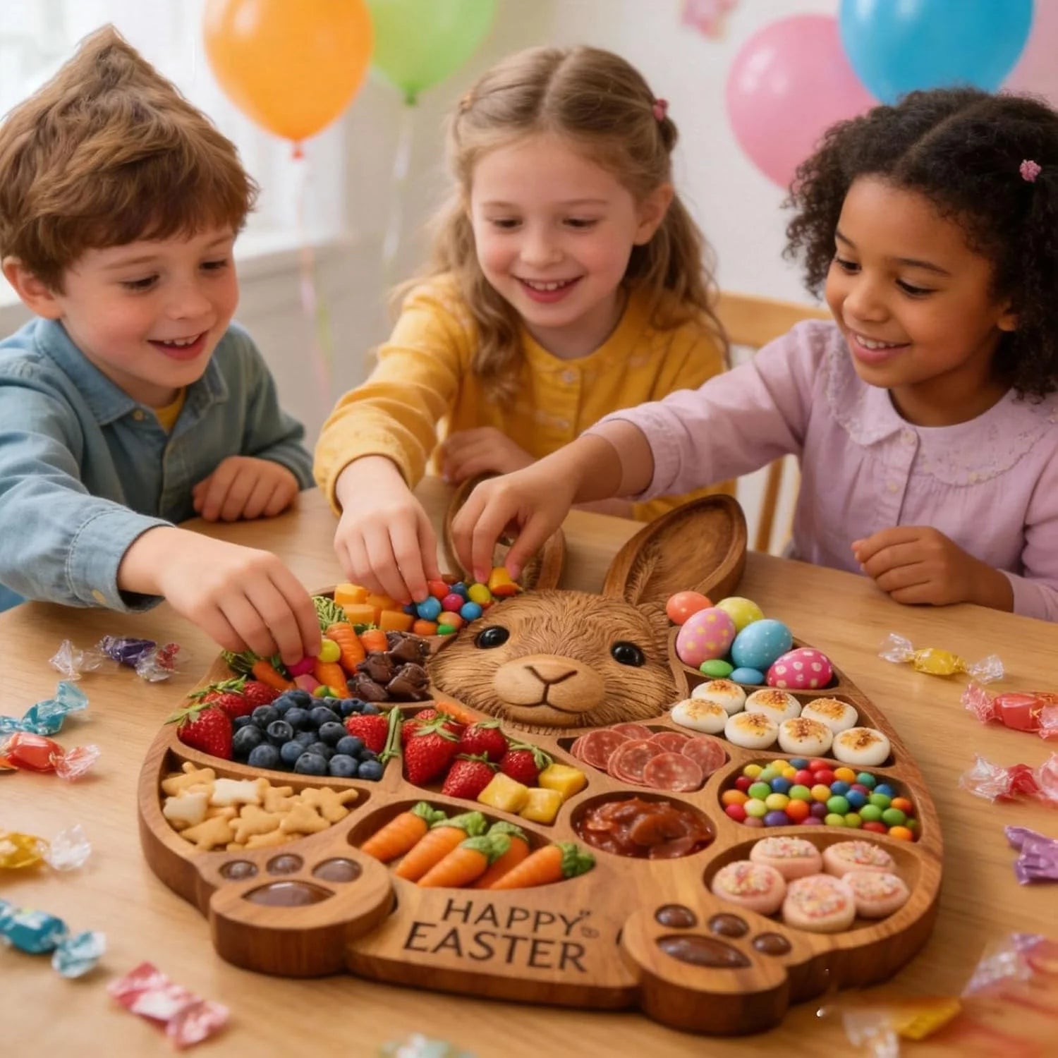 "This board is even cuter in person! I used it for our Easter brunch to display cookies and fruit, and everyone asked where I got it. The wood quality is great, and it was super easy to clean."