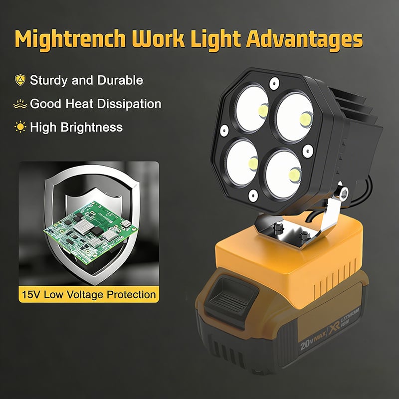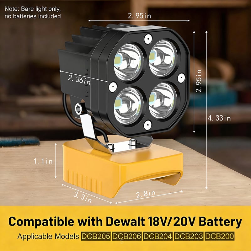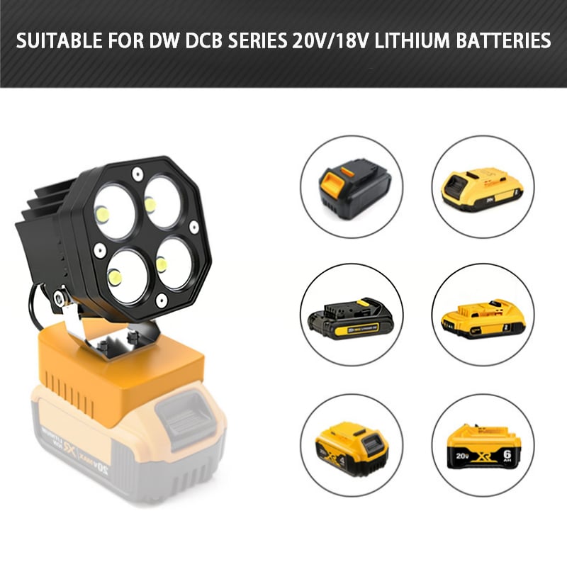 🔋 Plug-and-Play, Shares Battery Ecosystem: Use your existing DeWalt batteries (Models: DCB203, DCB204, DCB205, DCB206, DCB200, etc.) directly. Switch effortlessly between tools and lighting—cost-effective and efficient.