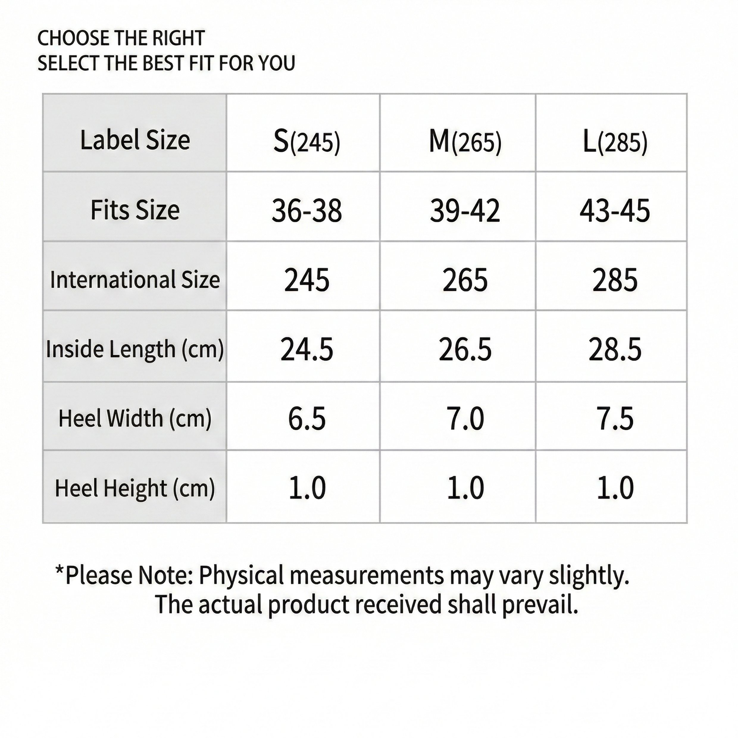 Sizes: S (EU 36-38) / M (EU 39-42) / L (EU 43-45)