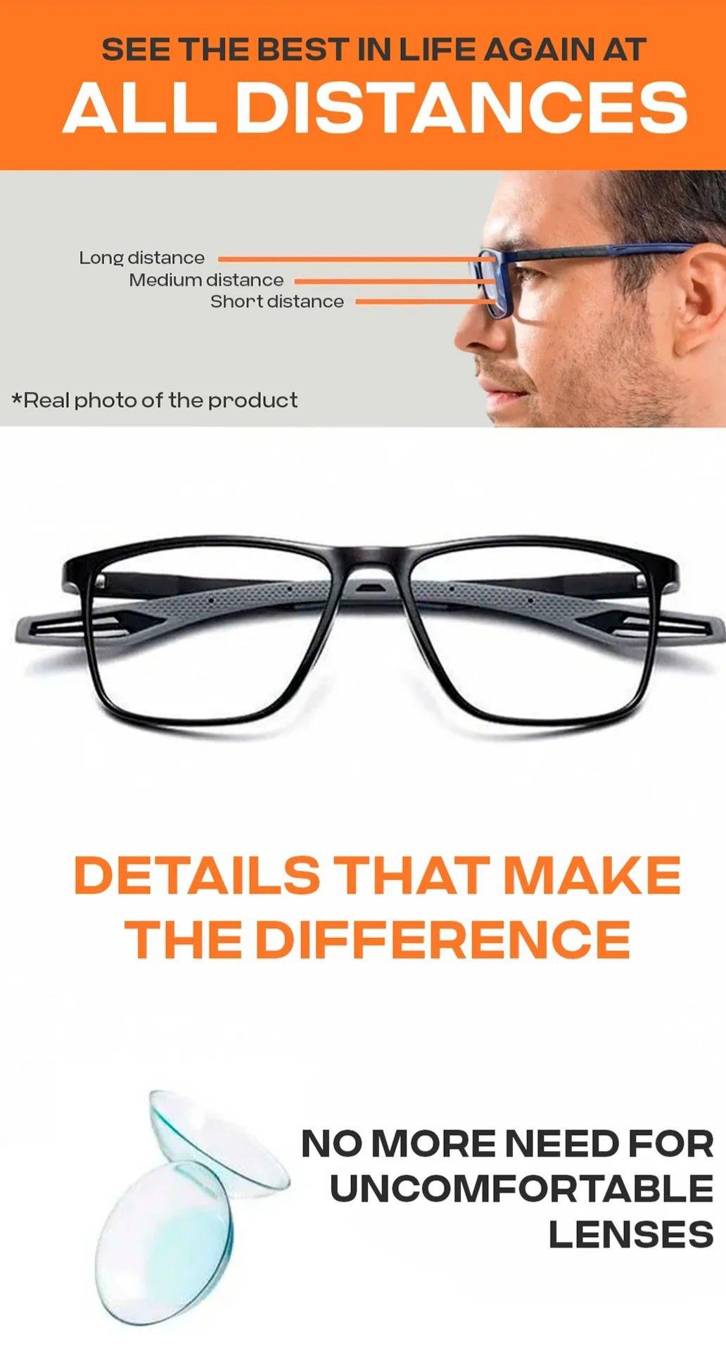 Clear vision at every distance with adaptive lens technology. Stylish, lightweight and comfortable for all-day use. Multifocal Glasses