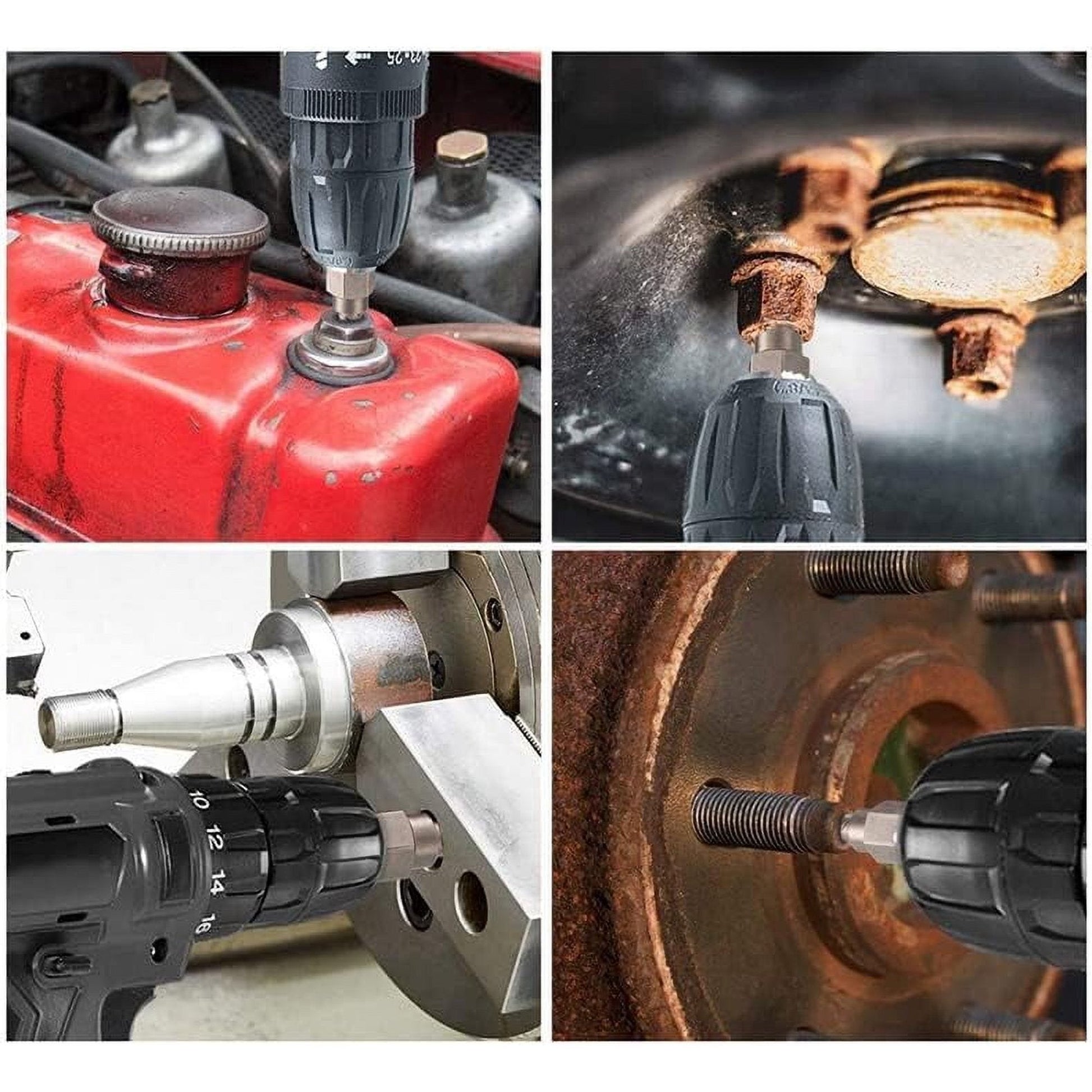 ★应用范围广泛 -驱动端采用六角形设计,可与扁扳手、钳子、活动扳手、套筒或VISE-GRIP锁紧钳配合使用。3/8英寸冲击级方头驱动,可与气动工具配合使用。此外,它还可以通过六角适配器转换为冲击钻头。