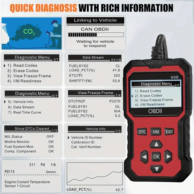 💥2025 Newest Enhanced Universal OBDII Scanner V410 Car Engine Fault Code Reader Diagnostic Tool