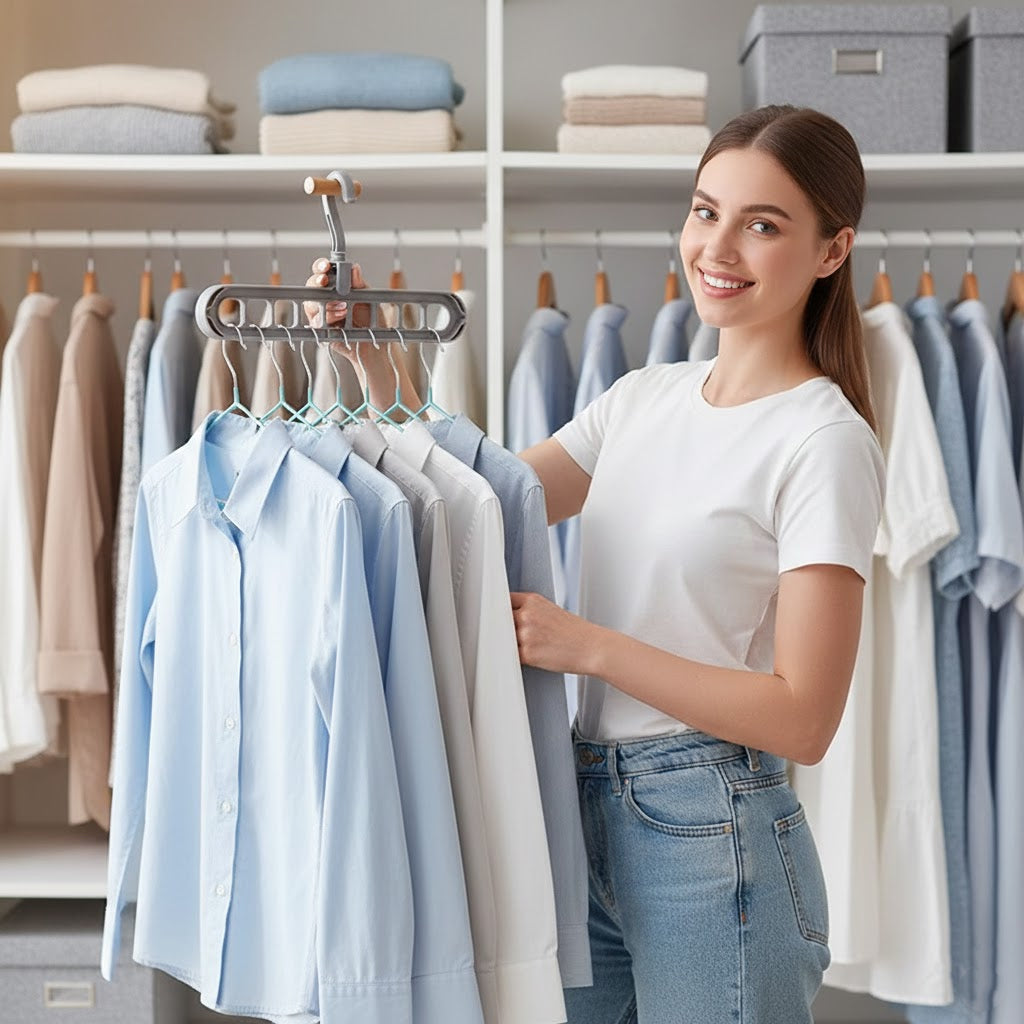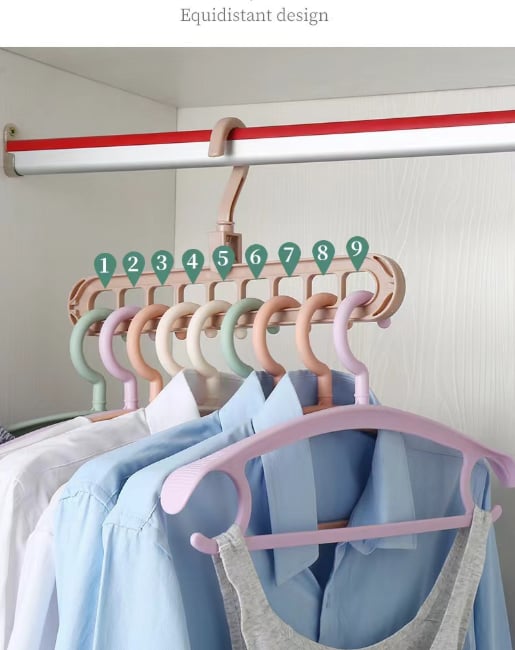 Struggling with clothes that no longer fit in your closet? The 9-in-1 Hanger is the perfect solution! It saves space when hung, prevents wardrobe overcrowding, and makes finding your favorite outfits effortless. Ideal for small closets, portable, and travel-friendly!