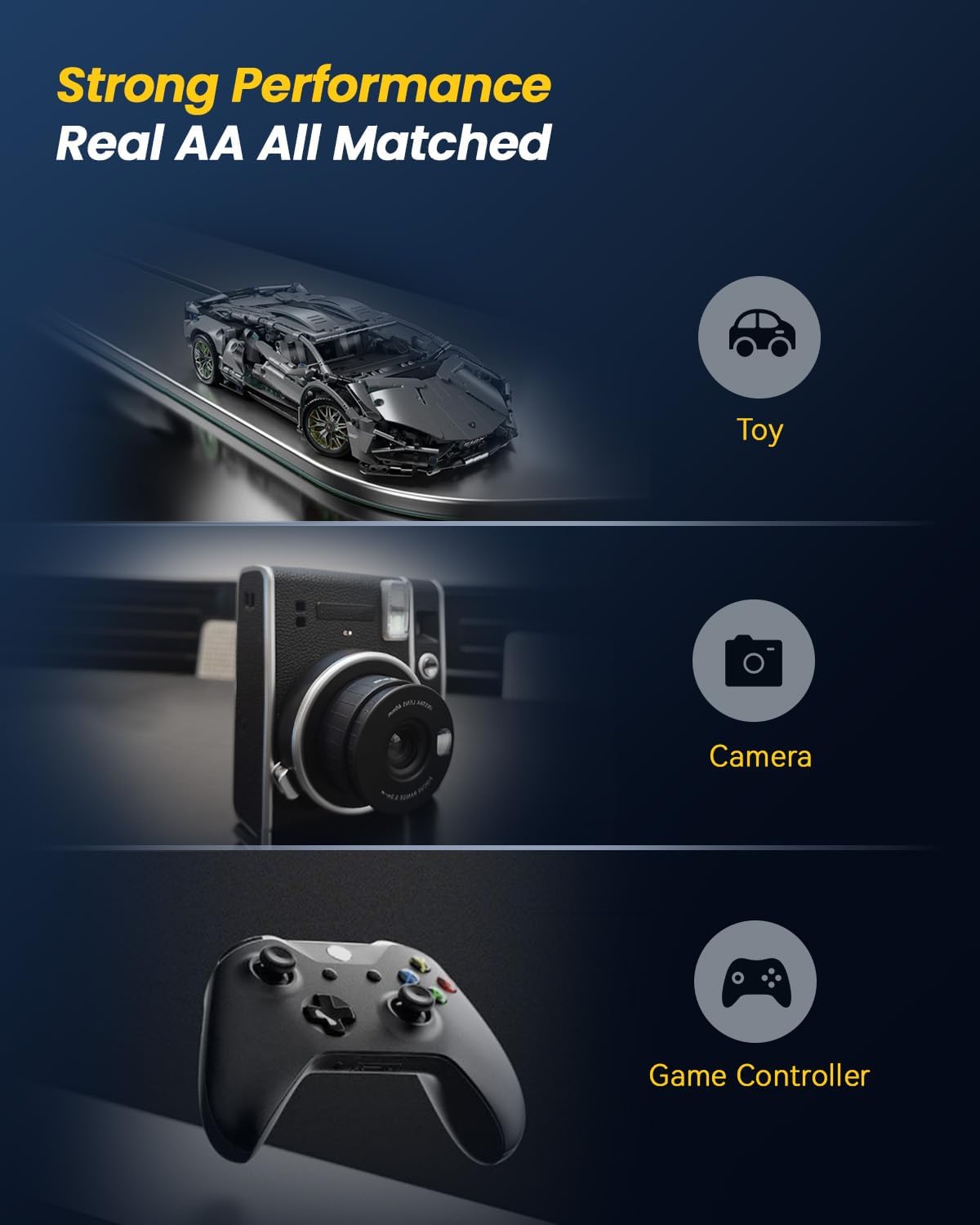 【Smart LED Display】The LED light displays charging status. Flashing Green indicates charging, Static Green indicated fully charged, Red indicates error battery or temperature state. For rechargerable 1.5V AA/AAA Lithium battery can in 4 hours in Static Green fully charged state.