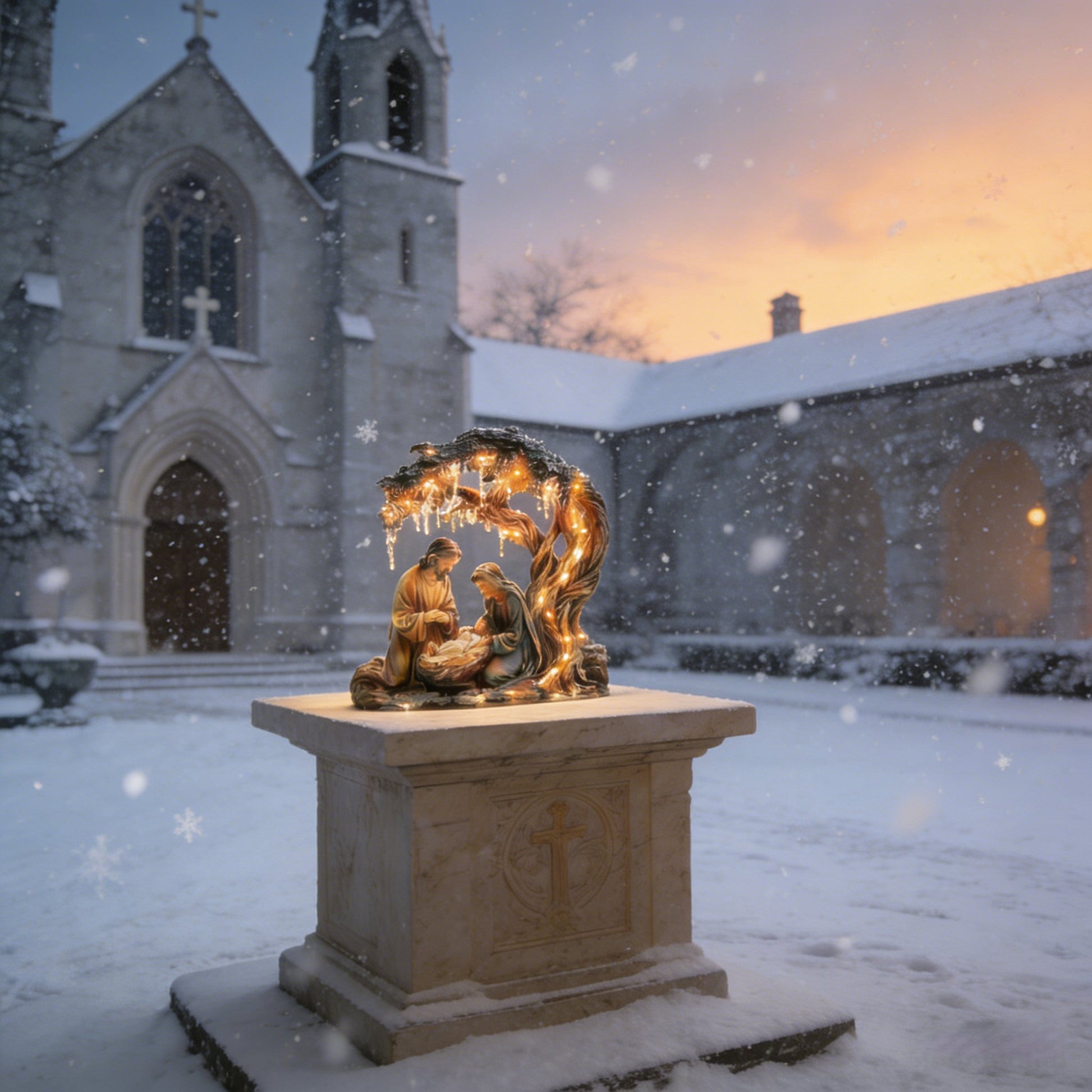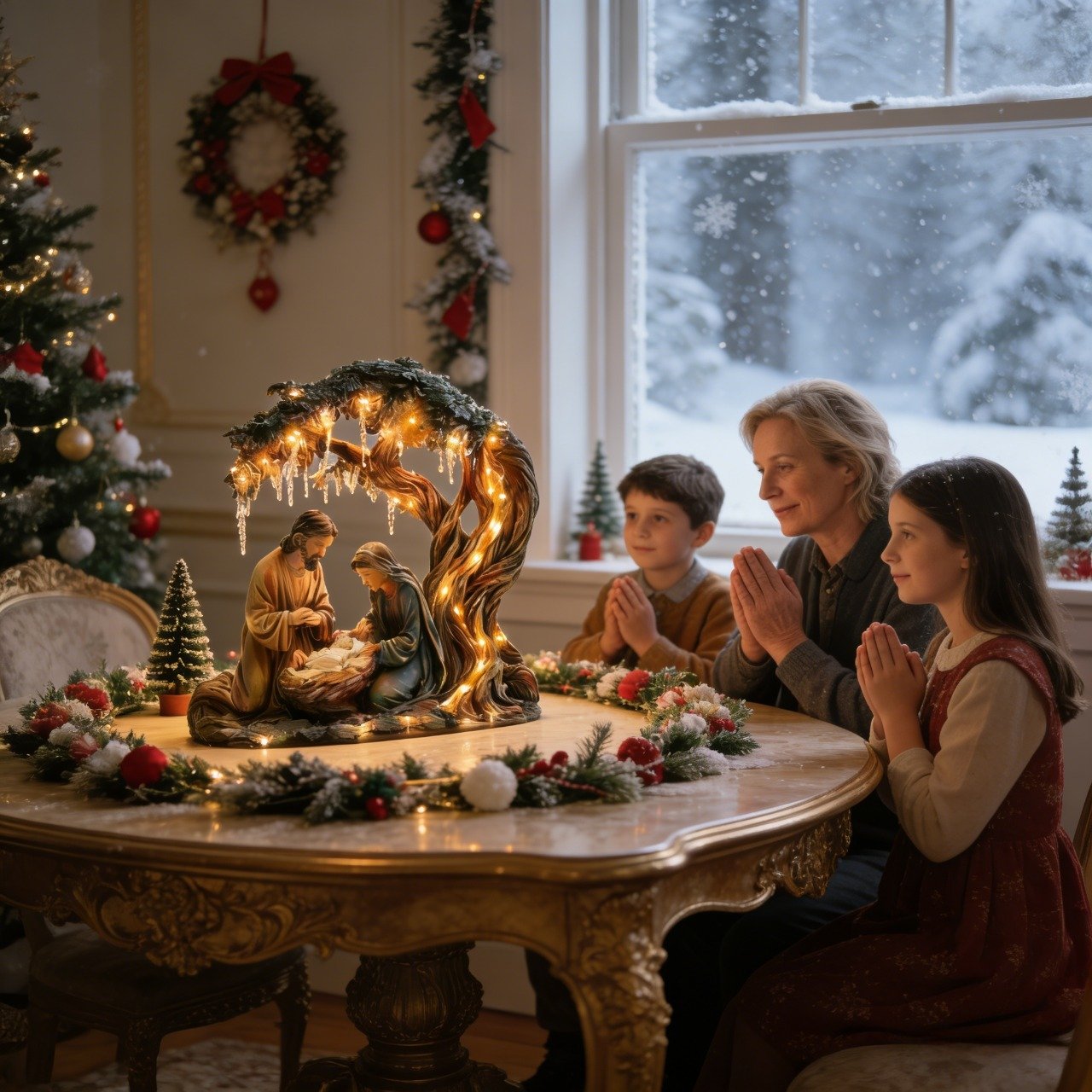 Christmas decorations in living rooms, churches, or holiday displays.