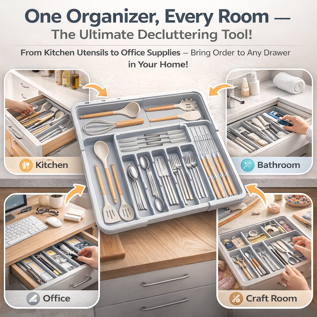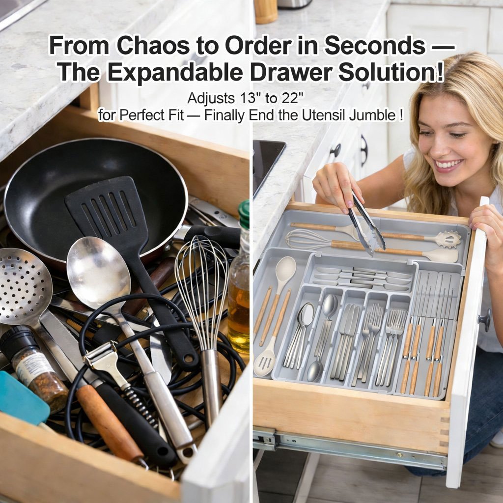 Maximize your kitchen drawer space and maintain a clutter-free countertop with this versatile Expandable Silverware Organizer—the perfect addition to every kitchen!