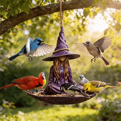 This isn't just a bird feeder—it's a spell of serenity cast upon your garden. As birds gather at her tray, the meditating witch keeps her silent vigil, blending the boundary between fantasy and nature. Every time you glance her way, you'll feel a little magic in the air.