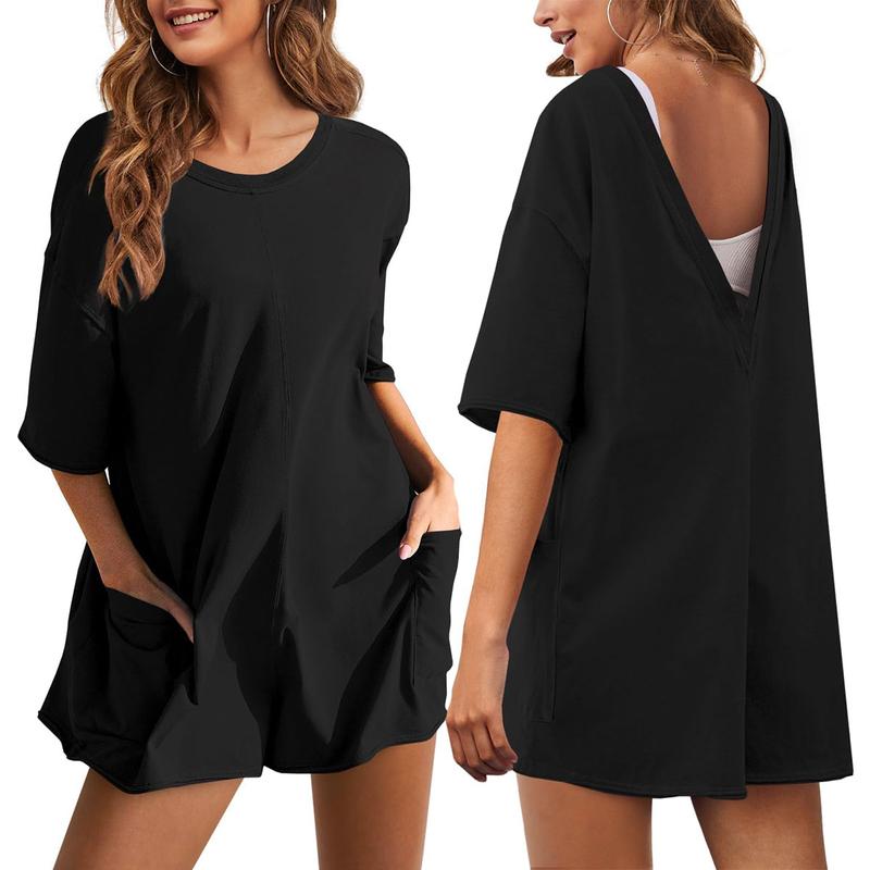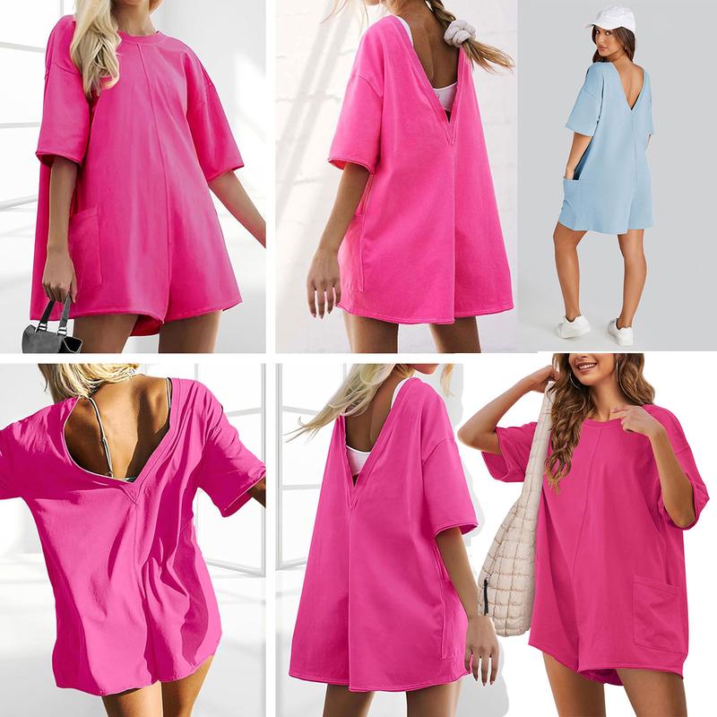 Women's Oversized Athletic Jumpsuit Casual Romper Overall Workout Tee Hot Short Romper